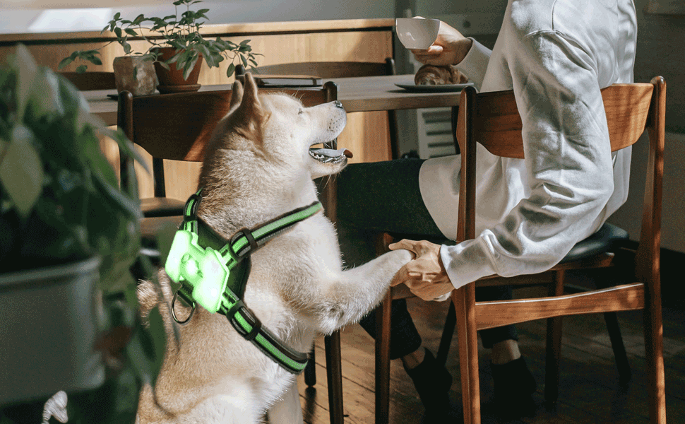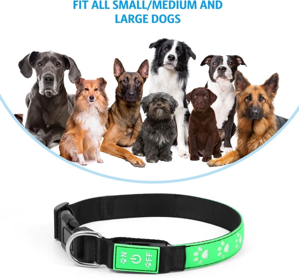 GLOW Dog collar , USB-C RECHARGING ,15 MODES LIGHTING GREEN