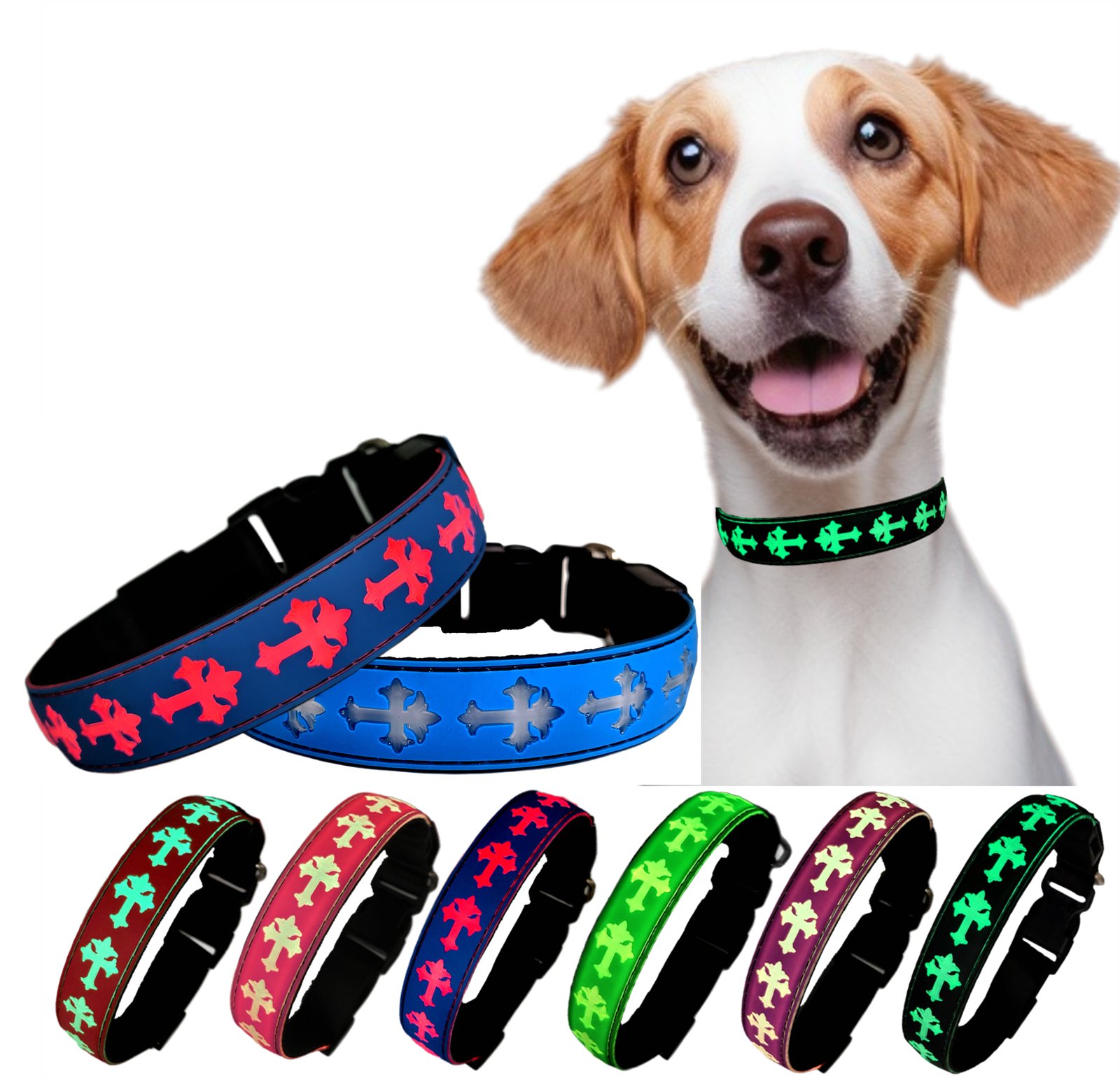 Glow in the dark dog collar , USB-C RECHARGING ,15 MODES LIGHTING BLUE