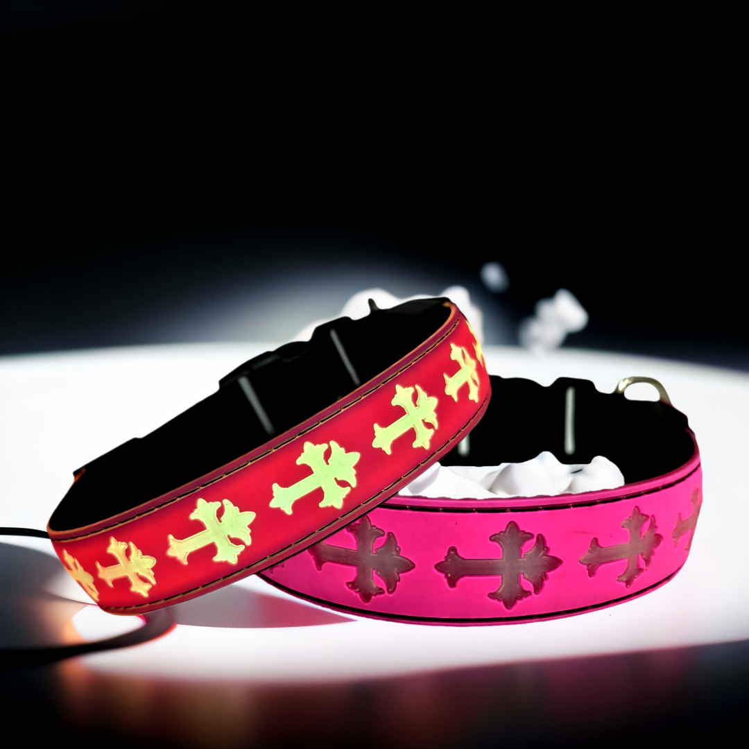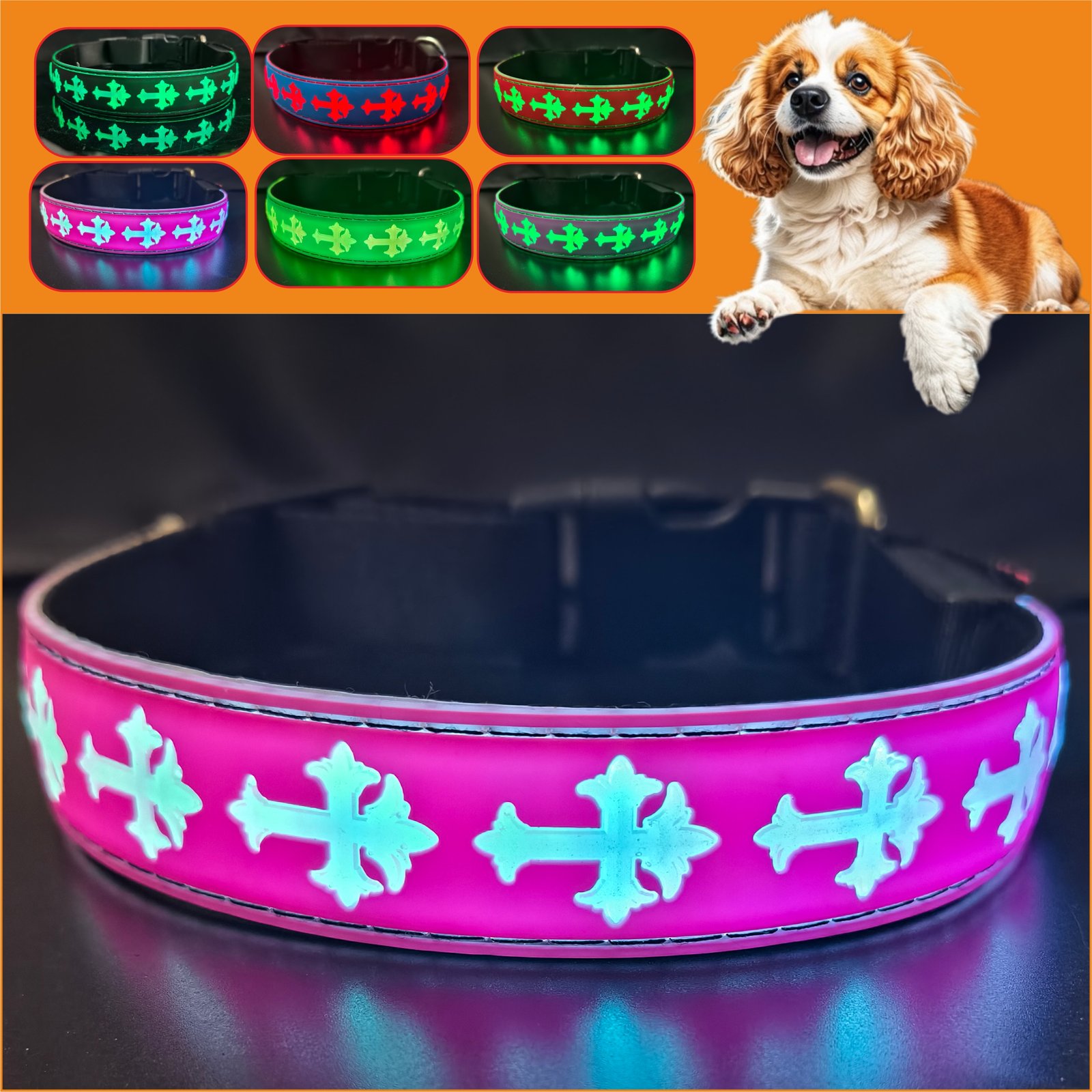 Glow in the dark dog collar , USB-C RECHARGING ,15 MODES LIGHTING PINK