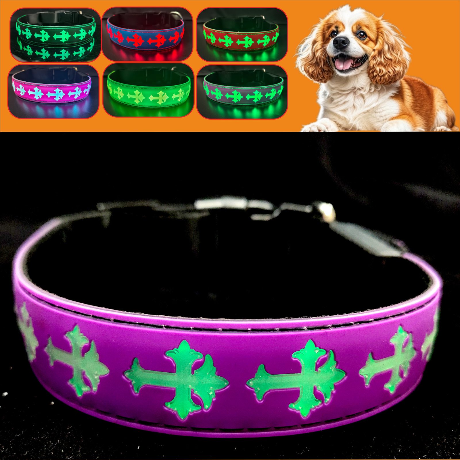 Glow in the dark dog collar , USB-C RECHARGING ,15 MODES LIGHTING PURPLE